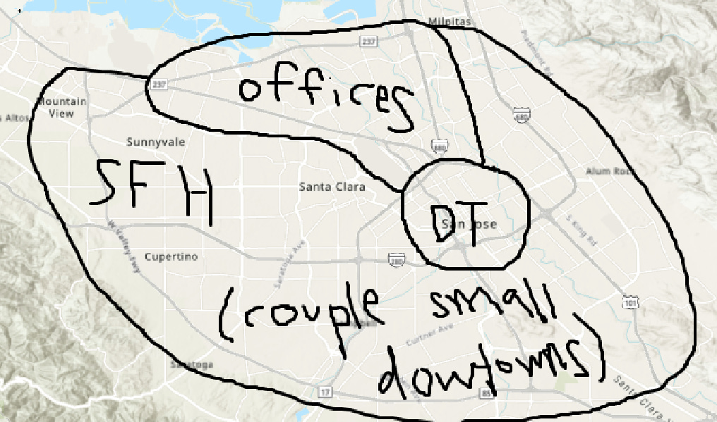 It’s not the fault of solely the VTA or the BART or Caltrain or anything though. Part of it lies with the prominent NIMBY mindset that many homeowners in the area have. Part of it lies in the lack of density around rail and bus corridors (you can blame both city councils and NIMBY folk for this). Part of it lies in the massive freeways we have throughout San Jose and the whole area that encourage us to drive everywhere.